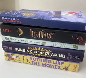 Book spines usually include important information relating to the book, like the title, the author's name, the publisher, and sometimes whether or not that book is a part of a series. [1]